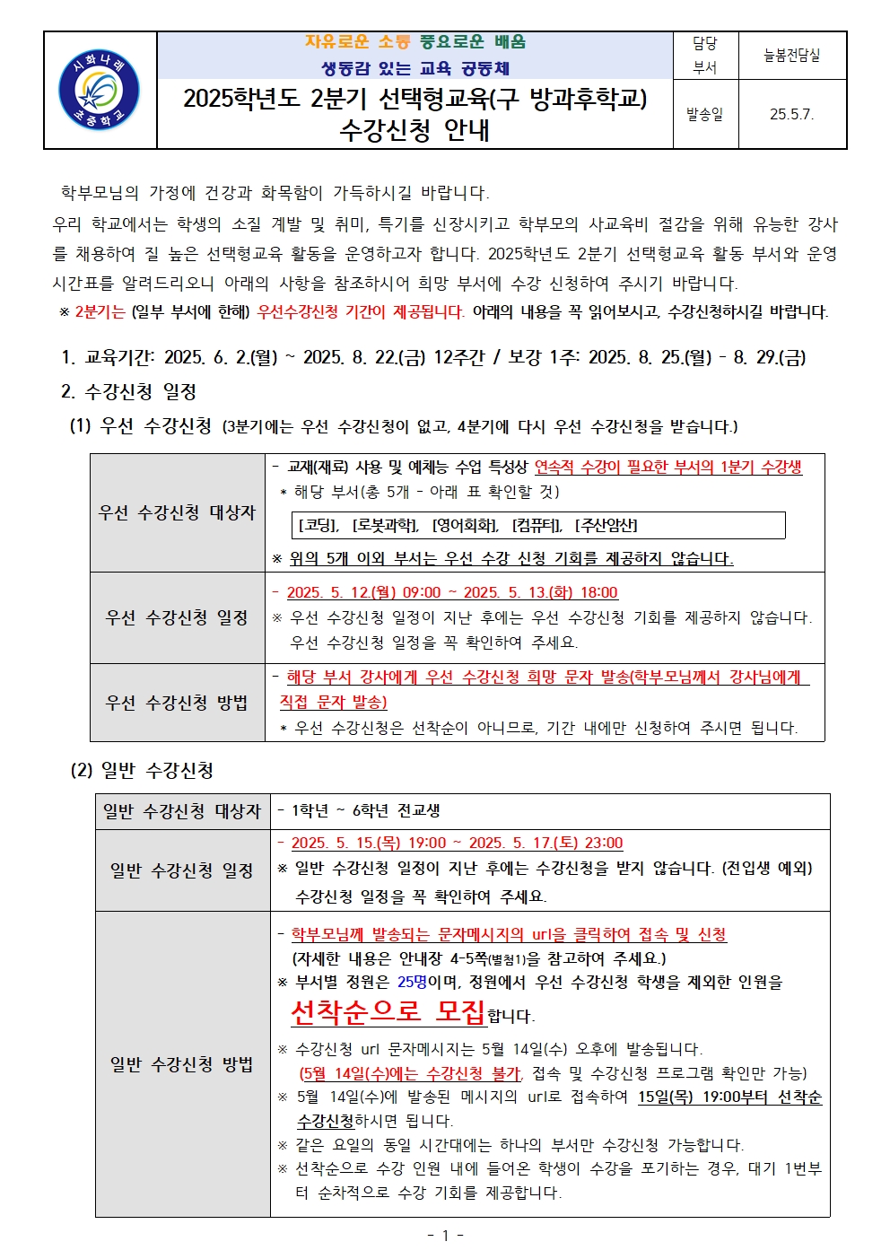 2025Çг⵵ ½ÃÈ­³ª·¡ÃÊ 2ºÐ±â ¼±ÅÃÇü±³À° ¼ö°­½Åû¾È³»¹®(ȨÆäÀÌÁö žÀç¿ë).hwp (678.50KB)