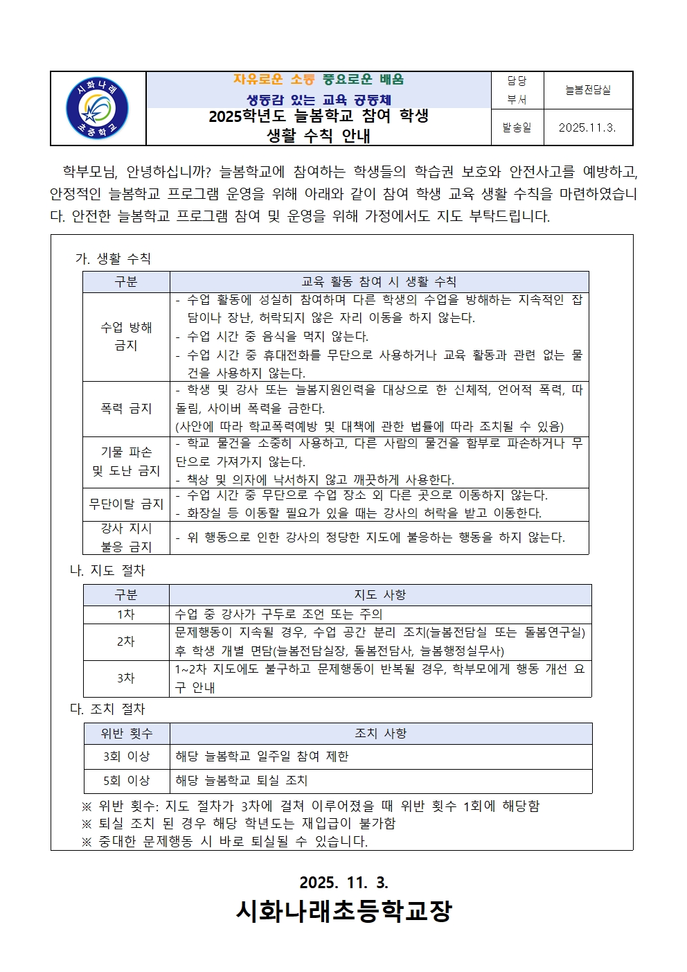2025Çг⵵ ´Ãº½Çб³ Âü¿© Çлý ±³À° »ýȰ ¼öÄ¢ ¾È³»Àå.hwp (284.50KB)