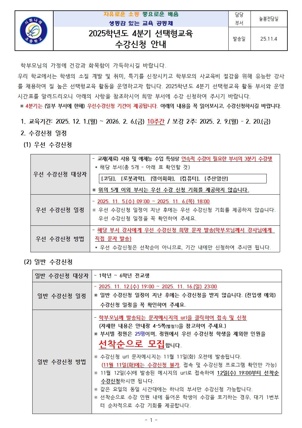 2025Çг⵵ 4ºÐ±â ¼±ÅÃÇü±³À° ¼ö°­½Åû ¾È³»Àå(ȨÆäÀÌÁö¿ë).pdf (204.18KB)