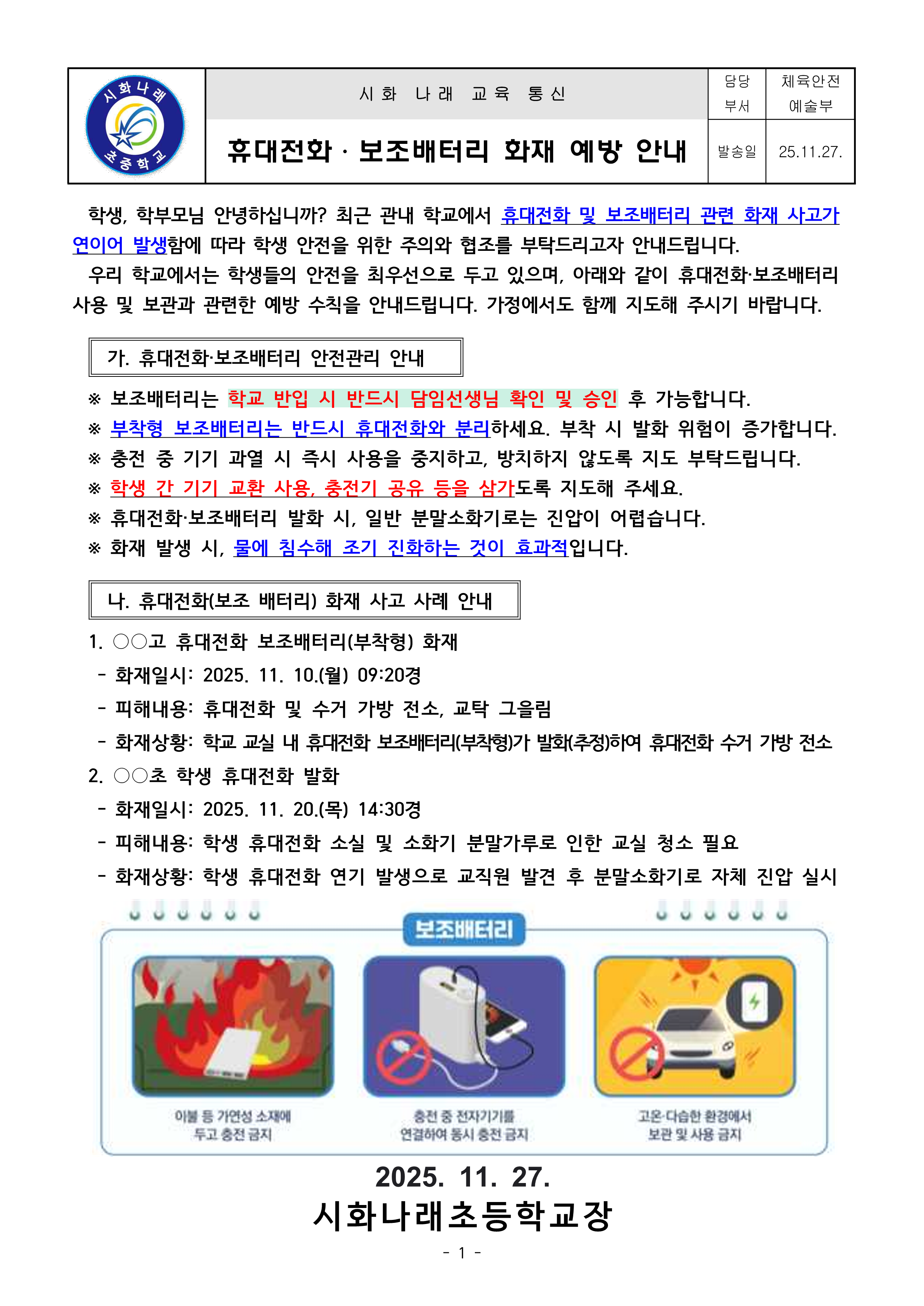 [ÀϹÝ] ÈÞ´ëÀüÈ¡¤º¸Á¶¹èÅ͸® ÈÀç ¿¹¹æ ¾È³»